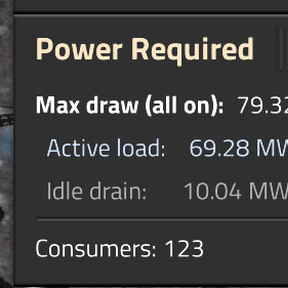 Shows the maximum power draw that would be required if all machines in the electric network were running simultaneously at full capacity.