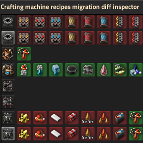 Allows you to compare the recipes a machine can craft to before the configuration changed.