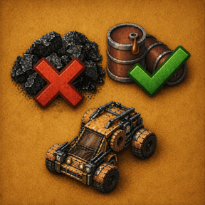 Replaces solid vehicle fuels with liquid fuel barrels for cars, tanks, hovercrafts, ironclads, and Cargo Ships vessels. Allowed fuels are configurable per vehicle family. Light oil (diesel), petroleum gas, heavy oil, or rocket fuel are acceptable