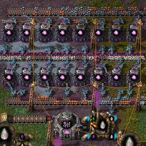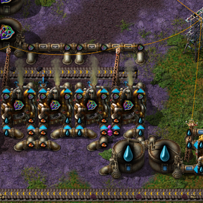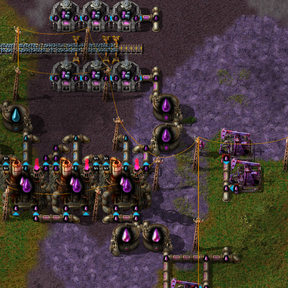 Upon landing, you'll find that wood is the only familiar resource available to you. You'll need to mine prismite to convert it into other resources, as well as voidstone to build voidforges. Once you've smelted some refined prismite and voidcrafted some metals in order to make mythril, you can build more advanced voidworks, and unlock further production techniques with the five new science packs added by Voidcraft and Iridescent Industry, like liquefying prismite, creating coherence infusion, scribing incantations in the scriptorium, and eventually mastering unshaped void itself to build the mighty iridescent voidworks. Or maybe you would rather make legendary disgusting slime.