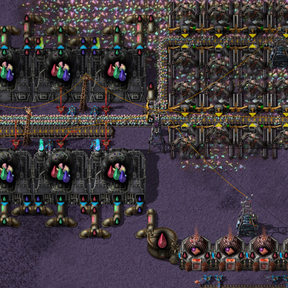 Arcanyx doesn't have any swarms of giant insectoids, but if you start polluting you will quickly wear out your welcome here just the same. Arcanyx is a magical place, and is home to spirits of the planet who will punish you for polluting their pristine homeworld. If you're giving off too much pollution, you'll find your assembling machines cursed, your belts clogged, your inserters rotated, and other bothersome consequences. You'll have to invest in some of Arcanyx's new technology to keep things clean.