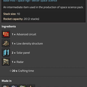 Better Space Science is a small mod that aim to add a bit of depth to space science, which is rather poor and quickly done.