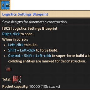 Load logistics requests from Blueprint — Applies your logistics setup from a blueprint (Careful, it clears your current logistics, so make sure to save first.)