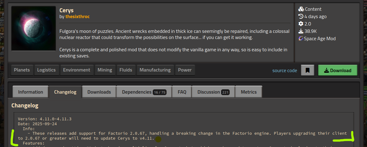 Fulgora's moon of puzzles. Ancient wrecks embedded in thick ice can seemingly be repaired, including a colossal nuclear reactor that could transform the possibilities on the surface... if you can get it working. Cerys is a complete and polished mod that does not modify the vanilla game in any way, so is easy to include in existing saves.