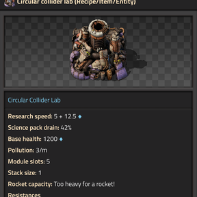 Add the circular collider lab, a powerful endgame upgrade for the lab. Unlocked on aquilo, you can use it on every surface, even in space!