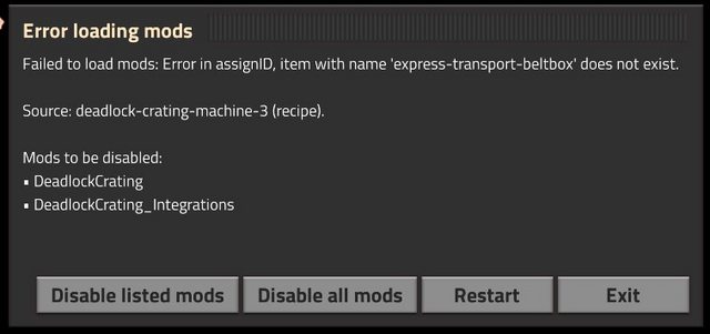 Adjusts the crating machine recipes to match Bob's Mods recipes, and adds higher tier crating machines. Requires Deadlock's Crating and Stacking for Bob's and Angel's mods.