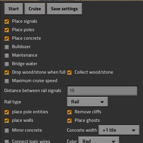 A Factorio 2.0-compatible revised continuation of Choumiko's Fully Automated Rail Layer. Places rails, signals, poles, concrete, and supports maintenance/bulldozer workflows while driving.