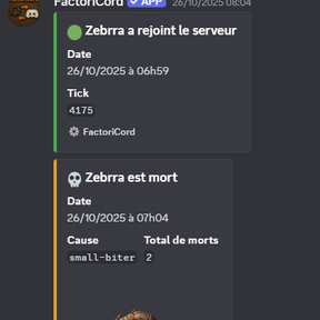 Together, they let you monitor, log and display Factorio events on Dsicord.