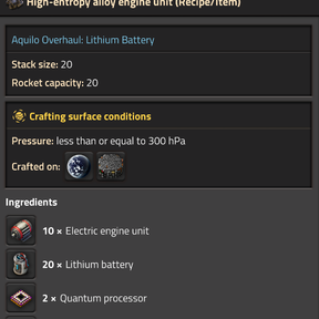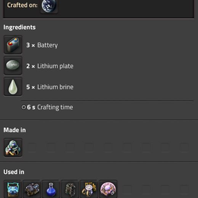 Lithium Battery, which adds powerful content and a whole new production chain for the endgame.
