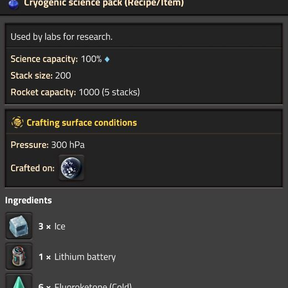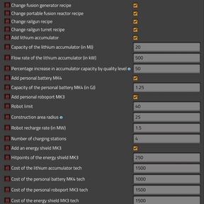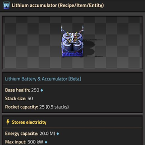 This highly customizable mod add lithium batteries, which are one more step in Aquilo's production chain. They are a new intermediate used in the cryogenic science pack recipe, as well as in some other Aquilo recipe. The mod also nerf the bonus energy capacity of accumulator with quality, from +100% to +50% by default.