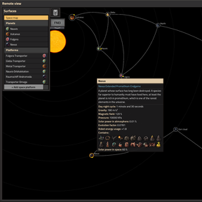 On this planet the player is faced with a new challenge where he needs all the technology of the other planets. Promethium has been completely reworked as a new resource and is now mined on Nexus. This new resource is used to build new components and machines.