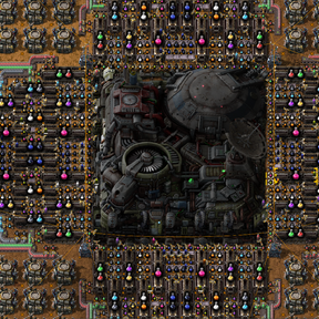 This is an upgrade to the landing pad, featuring an enormous storage, and a massively increased number of input bays for cargo drop pods. Since its 24x24, it allows the player to extract 4 stacked green belts of each science type with only inserters, and no bots!