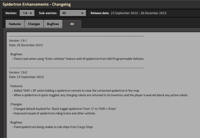 Some simple features to make your life easier whilst using a spidertron: - Enter a vehicle without leaving your spidertron - Quickly toggle between engineer and spidertron - Use spidertron remote pathfinder to navigate around lakes - Automatically sort spidertron inventories - Pipette remotes from inventory by hovering over spidertrons - Directly open the inventory of a vehicle that you are currently driving