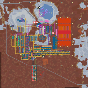 Even from this first location, things get tricky quickly, and spoilage and circuit networks are introduced early on. Though complexity is kept low to avoid an early game slog.