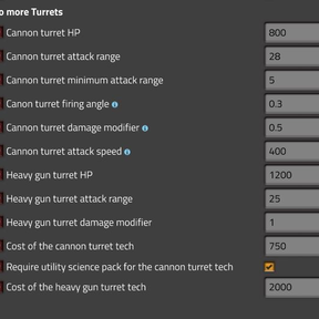 This mod add two vanilla like turrets. They are integrated and balanced to provide an enhanced experience in the Space Age extension. Particularly when combined with mods that add new enemies (like Armoured Biters), or simply to benefit from additional options against our beloved pentapods.