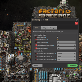 Start the game with equipment, roboport, armor and other equipment... Comece o jogo com equipamentos, roboport, armadura e outros equipamentos...