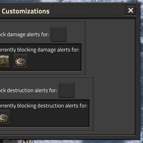 Allows the player to select entities that should not produce alerts when damaged or destroyed.