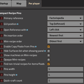 • Any mod which augments Copy/Paste functionality will have unintended interactions with Compact Recipe Pins. You can turn off CRP's Copy/Paste in the Settings.