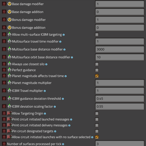 - Have it working presently such that with a toggleable runtime setting, ICBMs can target a surface different than its source; effectively allows the use of an ICBM as an IPBM