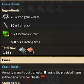 Adds an early crane, that helps building the early base before robots.