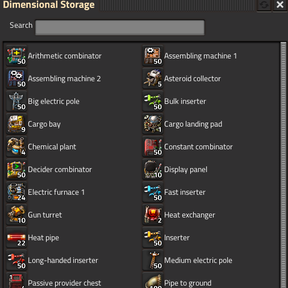 Dimensional Depot - Cross-surface storage accessible from any planet. Multiple Dimensional Depots across all surfaces share a unified inventory. Requires beating da game.