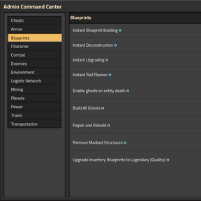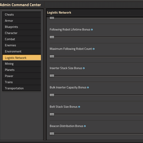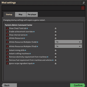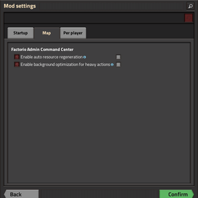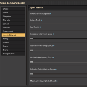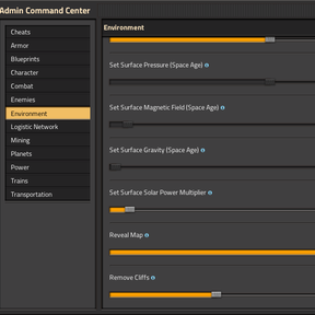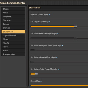 factorio-admin-command-center-locales >= 1.3.8 - ๐ฅ In multiplayer, admin tools are available to admins only.