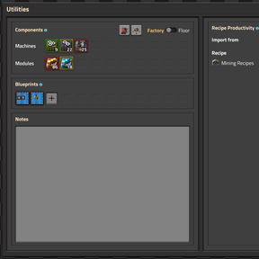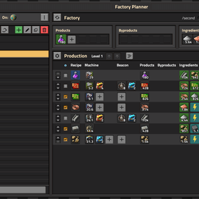 This is a mod that allows you to plan out your production in advance. You can select the products you want to produce and specifiy the recipes, machines and modules to accomplish that task. You can choose which timescale to use, incorporate mining productivity, and optionally have a matrix solver work out more complex scenarios. To be able to better structure your plans on large projects, you can create infinitely nesting subfloors that further lay out a specific recipe.