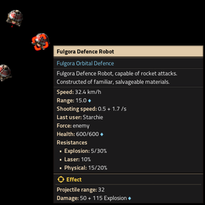 - Enemy Fulgoran Defence Robot health & damage