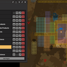 Plan out base geometry and reserve space by assigning chunks to regions. Basically a pixel art editor on a large grid overlaid on the factorio map, intended for planning factory layouts.