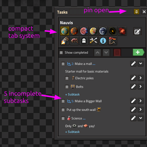 JOLT is a single player task/todo mod designed with Space Age in mind. Create a group for each planet to organize your tasks.