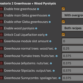The mod first and foremost provides a greenhouse for easily growing wood, pyrolysis tech for converting wood into coal and oil, plus early access to Coal Liquefaction. The wood pyrolysis recipes are meant to mimic real-life fast pyrolysis, which may produce varying amounts and qualities of oils, gasses and solid char through destructive distillation of carbonic material. The mod is somewhat similar to the Wood Gasification mod.