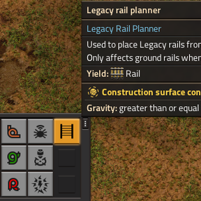 This mod adds a shortcut button which allows you to place the "Legacy rails" from Factorio versions prior to 2.0. Also has an optional keybind which can be assigned.