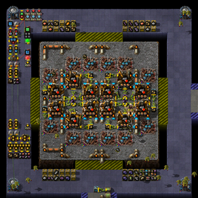 This facility was not built for factory construction. Because of that, the space is so limited that building a proper factory let alone a large-scale one is nearly impossible. However, even in a place like this, there is a way to build a meaningful factory. That solution is the recursive blueprint system.
