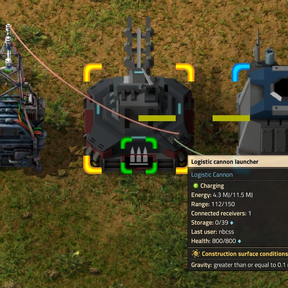 Logistic cannon (mass driver) introduces a new flexible way to deliver items over medium and long range by shooting them through cannons. Unlock the technology at early-mid-game. Load the cannon launcher with a consumable capsule and cargo, and set up a receiver with item requests, the items will then be deliveried once the cannon is charged with enough electricity.