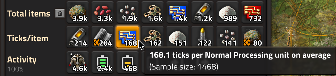 - Sometimes, a small number of items are delivered a long way, cluttering up the Ticks/item statistics. Right-click on one of the buttons to clear the history and start again.