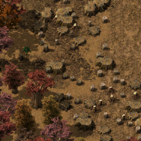 woodinto the base storage. - The cutter harvests trees.