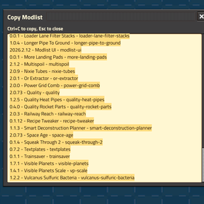 Internal Namewill tooltip the entire name, should it be cut off. - 2026.02.12 - Copy button! Easy-ish shareable list of active mods.