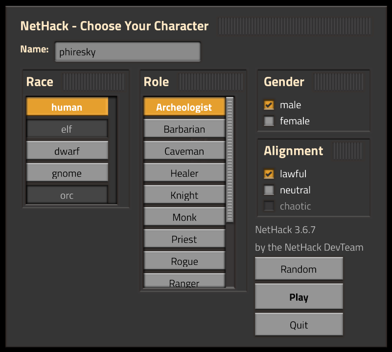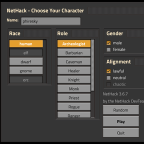 - Full NetHack 3.6.7 gameplay