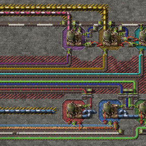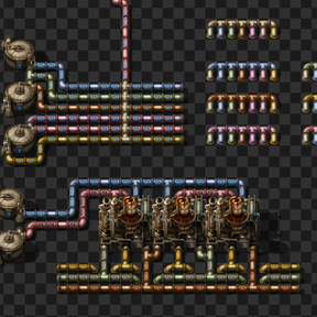 Dyed pipes are able to interact with any machine and normal pipes but not between each other, making them great for transporting fluid in more compact ways.