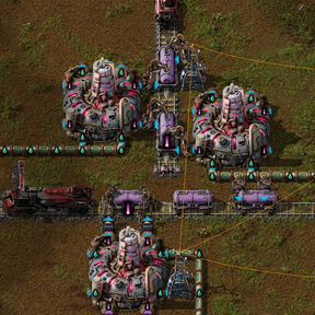 Your train speeds past you, dragging countless cargo and fluid wagons through the hostile landscape. At the very end of it, you spot a tiny pink wagon. Your fusion plasma has arrived.