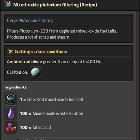 Adds a new recipe creating Plutonium-238 and preserving quality from ingredients on fulgoras moon Cerys.