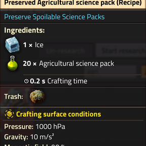 The simple preservation recipe unlocks at the same time as the original pack (e.g. agricultural science) and uses ice as the preservation medium. The preserved form of the pack replaces the normal pack in all researches and in all labs.