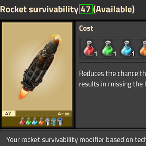 Reduces the cost of Space Exploration's Rocket Survivability research. The exponential curve is adjusted so that the loss chance will be halved whenever the number of science packs spent on the research doubles.