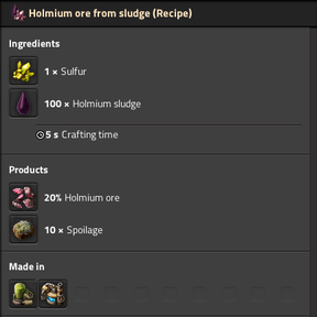 - When processed with small amount of sulfur you have a chance to get holmium ore