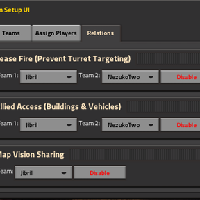 Allied Access: Determine whether teams can access each other's buildings and vehicles.
