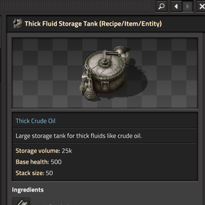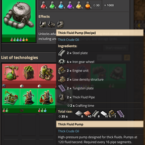 - Thick Fluid Pumps - Required every 16 pipe segments (120 fluid/sec, 300kW each)