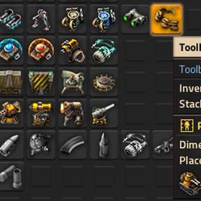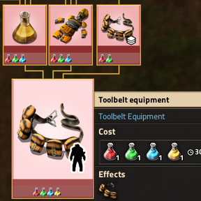 Toolbelt equipment is a 3x1 item which gives your character 10 additional inventory slots.
