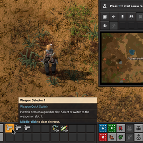 Usage: Set some quickbar slots to be weapon selectors, like shown on the screenshots. Now, when you click on that item, or press a key corresponding to the quickbar slot (top-row number keys by default), your active weapon switches to the corresponding slot.