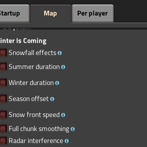- Incremental snow front simulation: freezing and thawing advance in controlled strips/chunks, so work is spread over time instead of hitting the whole map at once