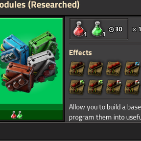 Rework how the modules are produce. A blank module is created first and can then be programmed to do usual module stuff. There is three consequences: you only need to provide blank module, since the programmation is a really quick recipe that can be made by any assembler or character; you can interchange any module, reversing them to their blank state and then back to a new program; and finally, the tiers 3 will be available later, since the blank tiers 3 need ressources from gleba, fulgora and vulcanus. The modules may be overhaul cheapers.